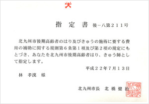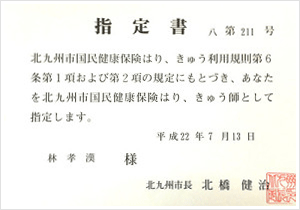 当院は公的な認可を受けた、安心できる鍼灸院です